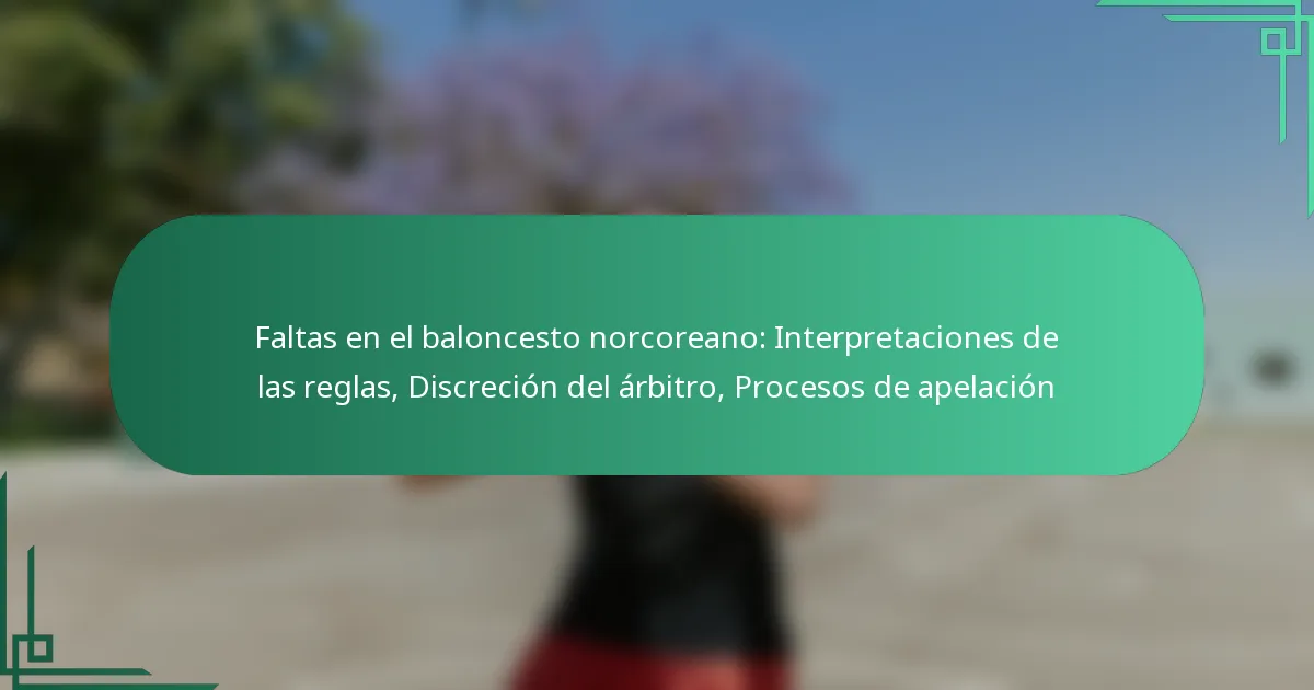 En el baloncesto norcoreano, las faltas son violaciones críticas que pueden alterar la dinámica del juego y resultar en sanciones, lo que hace que una comprensión clara de estas reglas sea esencial para jugadores y entrenadores. La discreción del árbitro juega un papel significativo, ya que los oficiales interpretan las reglas en función del contexto del juego, lo que puede influir en los resultados. Además, los equipos tienen la oportunidad de impugnar las decisiones de faltas a través de un proceso de apelación formal, asegurando la equidad y la transparencia en las decisiones arbitrales.