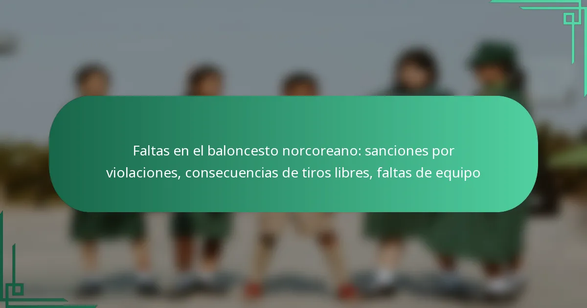 En el baloncesto norcoreano, las faltas se clasifican en personales y técnicas, cada una afectando el juego a través de sanciones específicas y oportunidades de tiros libres. Comprender las implicaciones de las sanciones por violaciones es crucial para jugadores y entrenadores, ya que las faltas personales, técnicas y de equipo pueden alterar la estrategia y el flujo del juego. Las consecuencias de los tiros libres surgen de las faltas, ofreciendo al equipo contrario la oportunidad de anotar sin interferencias, con regulaciones únicas que pueden aplicarse en este contexto.
