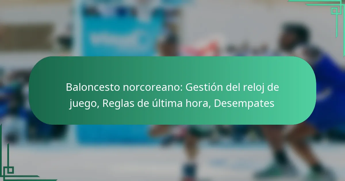 En los últimos minutos de un partido de baloncesto norcoreano, reglas específicas rigen la gestión del tiempo de juego, las faltas y los tiempos muertos que pueden impactar significativamente el resultado. Comprender estas regulaciones es crucial para los equipos que buscan asegurar una victoria en situaciones de alta presión.